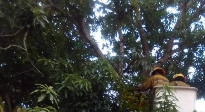 Estaba buscando mangos. Con una vara de unos tres metros de largo, un joven de 16 años intentaba alcanzar las frutas subido a un árbol, pero perdió el equilibro y el metal tropezó con el tendido eléctrico en el cruce de las calles Vegas con Esperanza de la comunidad 3 del sector La Yaguara, parroquia Independencia, municipio Libertador.
