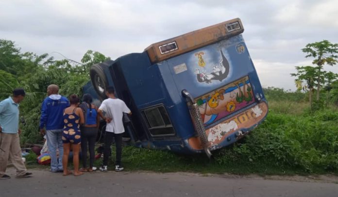El vehículo, que pertenece a la línea de la Ruta Boquerón, es de color azul, placas 6015A0B, y trascendió que trasladaba al menos a 35 pasajeros, y transitaba por el sector La Unión del municipio Carlos Arvelo.