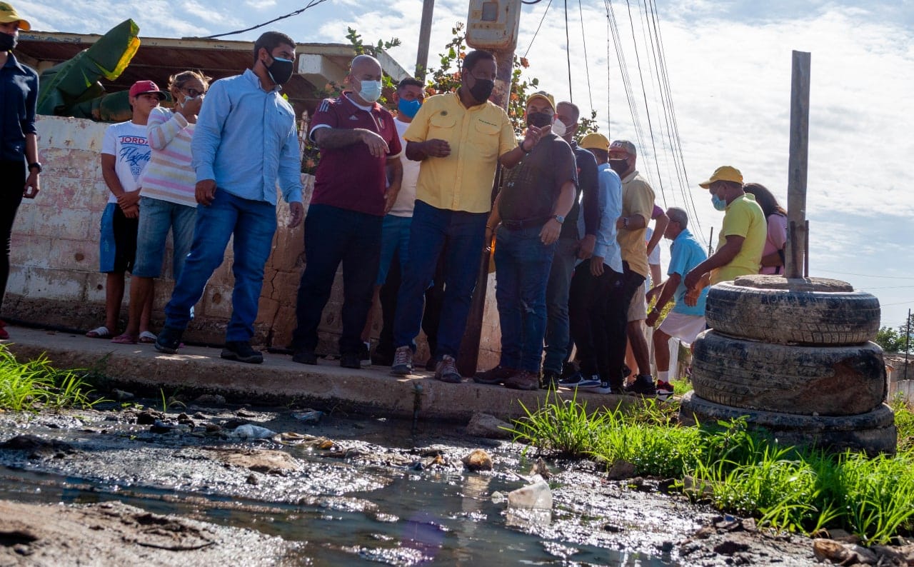 *Maracaibo, 15 de febrero del 2022.* Durante la mañana de este martes, el alcalde Rafael Ramírez se dirigió a la ciudad desde el sector Altos de Jalisco II, en la parroquia Coquivacoa, en compañía del equipo de la Dirección de Infraestructura y la Dirección de Aguas, para anunciar los trabajos que efectúan atendiendo la emergencia en aguas residuales que afecta al sector.