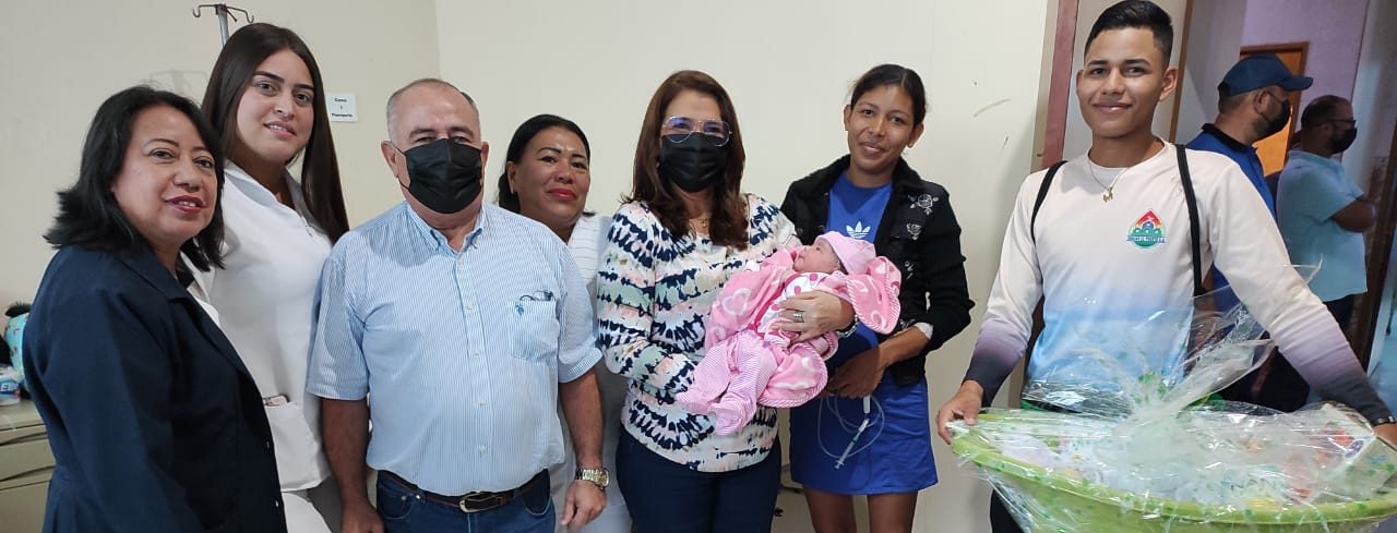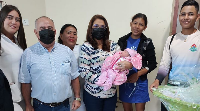 Alcalde y Primera Dama entregan canastilla a la primera niña nacida en 2023 en Colón