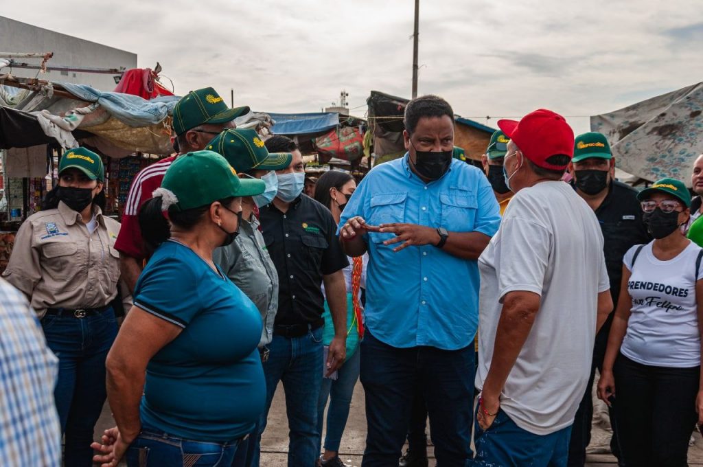El alcalde Rafael Ramírez Colina asistió a la actividad acompañado de los directores: Joaneli López, de Salud; Saúl Castellano, comisionado especial para el casco central; y Rafael Viloria, de Alimentación, donde compartió con quienes hacen vida en este mercado conocido como mercado “Los Plataneros” frente a la estación del Metro.