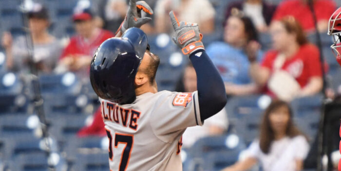 El venezolano José Altuve, de los Astros de Houston, llegó la noche de este martes a 1.800 imparables de por vida en las Grandes Ligas (MLB, por sus siglas en inglés).