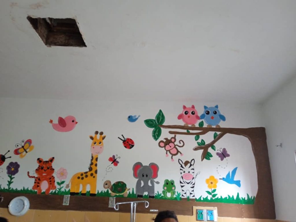Según explicaron los estudiantes, las mejoras del área consistieron en pintar el retén, colocar cortinas, cerraduras, bombillo y sócate, donar artículos de limpieza, incluyendo cepillo, coleto, además de yeso para la reparación de la placa; también los jóvenes colocaron dibujos alusivos al espacio infantil y una cartelera informativa.