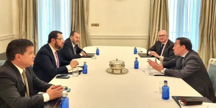 En su visita a Madrid, fueron recibidos por el ministro de Relaciones Exteriores de España, José Manuel Albares Bueno.