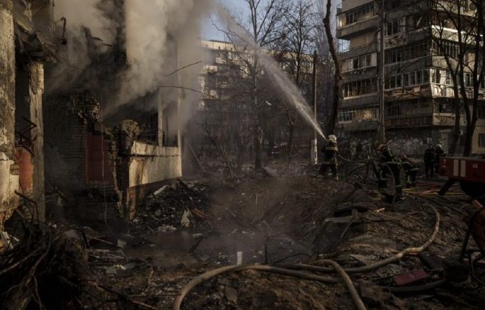 El presidente ucraniano, Volodymyr Zelenskyy, dijo que los bombardeos alcanzaron cuatro edificios de varios pisos en la ciudad y mataron a decenas de personas. El bombardeo provocó un gran incendio en un edificio de apartamentos de 15 pisos y provocó un frenético esfuerzo de rescate.Los ataques, llevados a cabo el día 20 de la invasión de Rusia, se dirigieron a un distrito occidental de Kiev, interrumpiendo una calma relativa que volvió después de que se detuviera un avance inicial de las fuerzas de Moscú en los primeros días de la guerra.