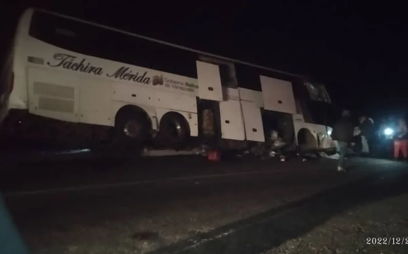 El transporte que cubría la ruta Caracas-Mérida, en el siniestro, ha dejado, hasta los momentos, un saldo de 3 fallecidos, en los cuales son dos choferes y una pasajera, 8 heridos, de los cuales hay 3 en estado de gravedad.