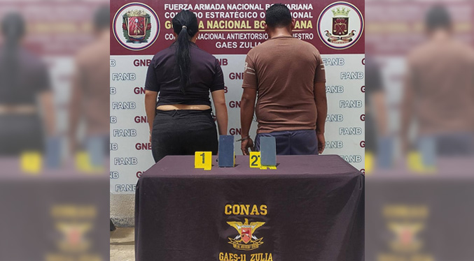 Como Darwin Antonio Zambrano Benítez y Yesika Lourde Parra Rodríguez quedaron identificados los capturados por efectivos del Comando Nacional Antiextorsión y Secuestro en la ciudad de Maracaibo tras detectar que eran miembros de una banda dedicada a la extorsión.
