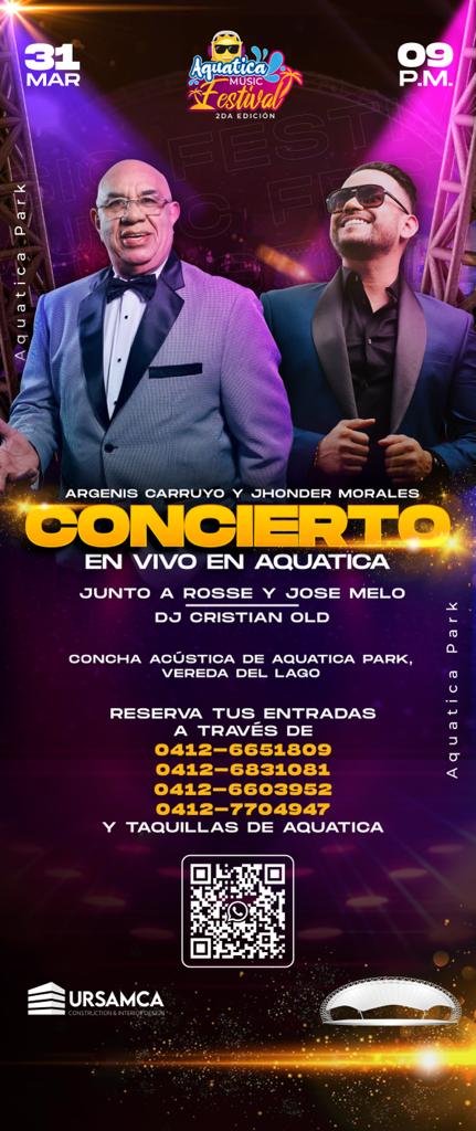Este 31 de marzo el Volcán de América, Argenis Carruyo, junto al cantante zuliano de vallenato Jhonder Morales, se presentará en la segunda edición del Aquatica Music Festival, uno de los conciertos más esperados en la ciudad.