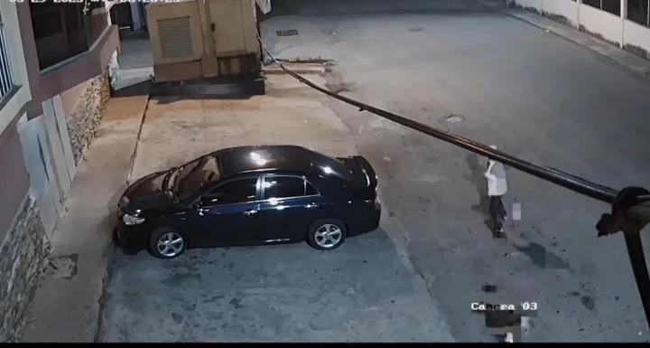 Las cámaras del establecimiento comercial, captaron a un hombre delgado, vestido de suéter manga larga blanca con capucha, tapa boca y un jeans color negro, que se acerca y comienza a disparar, a las puertas de hierro del lugar.