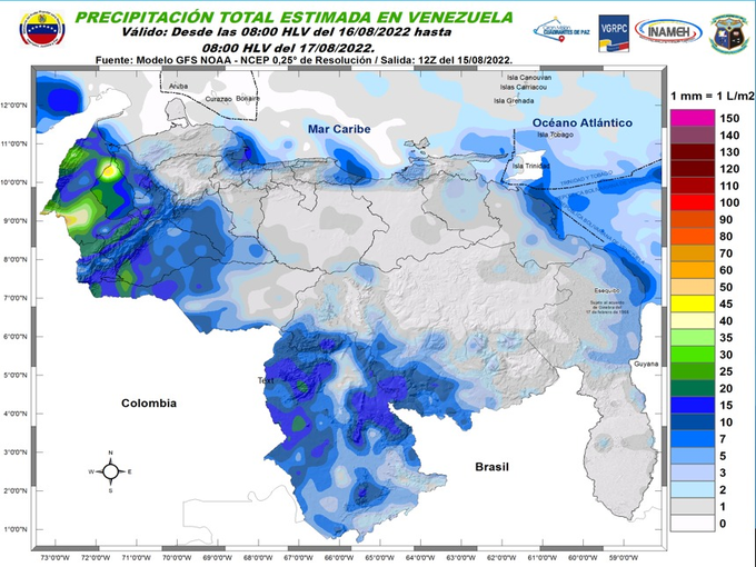 El organismo indicó en su reporte diario en redes sociales que igualmente podrían originarse precipitaciones en Zulia, Cojedes, este de Miranda, Guárico, Apure y Amazonas.