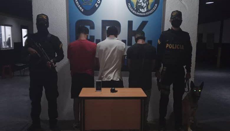 Según lo indicó el CJ Sergio Villasmil Rondón director general del Cpez, el arrestos se llevó a cabo en horas de la tarde del miércoles, al ser interceptados pretendieron darse a la fuga, cuando se les realizó la inspección corporal se les encontró una bolsa con restos vegetales de presunta marihuana con un peso de 30 gramos.