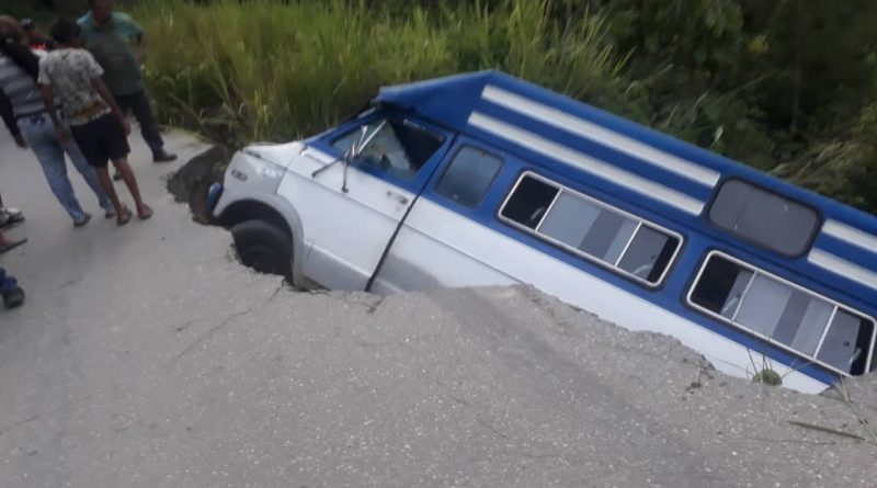 Una buseta del transporte público de la Línea de La Palmita, volcó en una falla de borde que hay en la vía que conduce  El Vigía con la capital de la parroquia Gabriel Picón González del municipio Alberto Adriani.