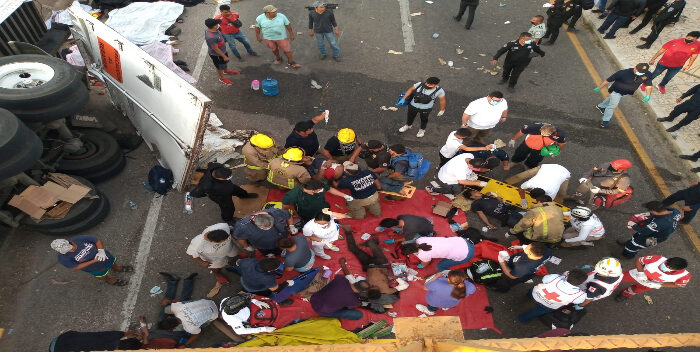 Los habitantes de la comunidad contaron a EFE que previo al accidente vieron al vehículo con una caja seca de carga, que no portaba placas de circulación, donde viajaban los migrantes hacinados, circular a toda velocidad pues eran perseguidos por agentes de la Guardia Nacional.