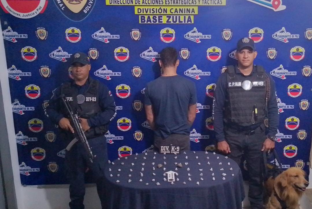 Durante labores de patrullaje y saturación, funcionarios de la División Canina de la Policía Nacional Bolivariana en la Redip Occidental, capturaron a un sujeto por el delito de microtráfico de drogas en el municipio San Francisco del estado Zulia.
