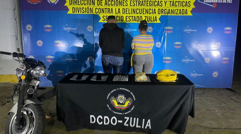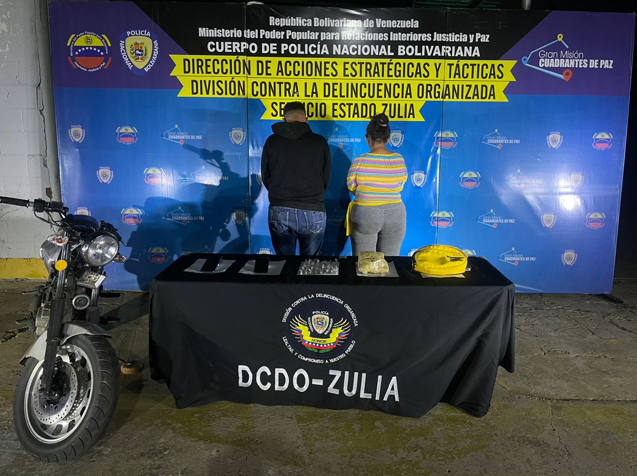 Dos microtraficantes fueron detenidos por funcionarios de la División Contra la Delincuencia Organizada adscritos la entidad zuliana en la REDIP Occidental de la Policía Nacional Bolivariana, los mismos quedaron identificados como Jorge Soto (36) y Nohemí Sierralta (24).