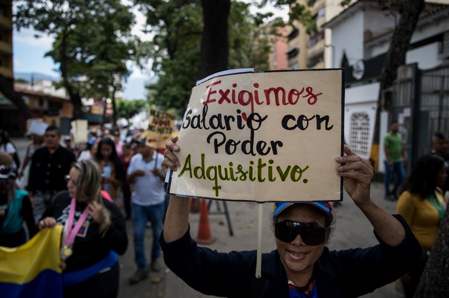 “Por esta razón los trabajadores y pensionados tienen meses en la calle protestando, sobretodo los empleados públicos, quienes son víctimas de un exterminio premeditado de parte del régimen de Maduro, que los condena a morirse de hambre con salarios todos inferiores a cincuenta centavos de dólar diario. Este exterminio de un amplio sector de la población se hace también con la complicidad de una cúpula seudo empresarial, en favor de un modelo de burbuja criminal excluyente con niveles grotescos de desigualdad”, señaló.
