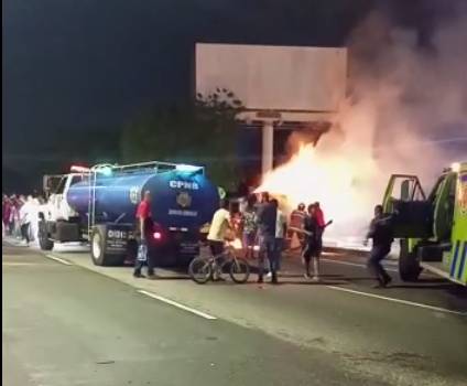 Se espera la confirmación, por parte de las autoridades, de dos posibles fallecidos los cuales habrían quedado atrapados dentro del vehículo incendiado.