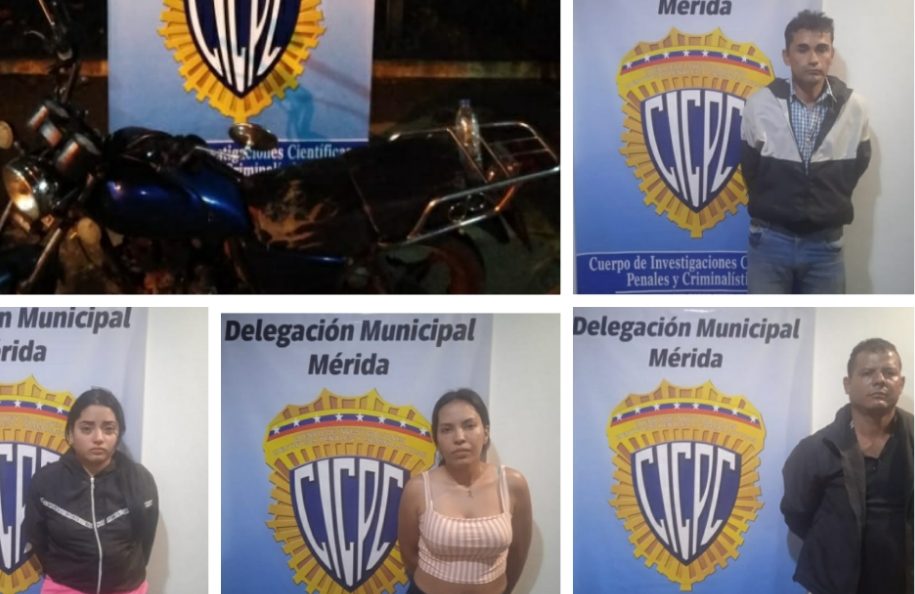 Con la detención de dos hombres y dos mujeres, funcionarios adscritos a la Delegación Municipal Mérida del Cuerpo de Investigaciones Científicas, Penales y Criminalísticas (Cicpc) desmantelaron una banda de robaquintas, oriunda del estado Trujillo, que operaba en la capital merideña.