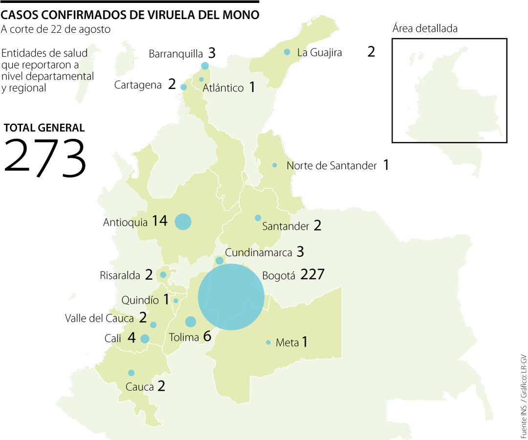 El Instituto Nacional de Salud (INS) afirmó que a corte de 22 de agosto ya son 273 personas contagiadas con Viruela del Mono en Colombia, añadieron que en una semana se duplicaron los casos.