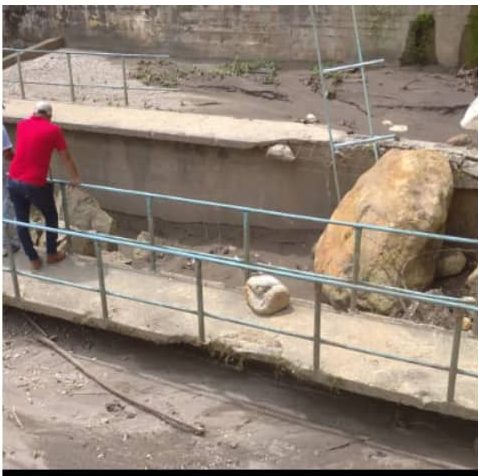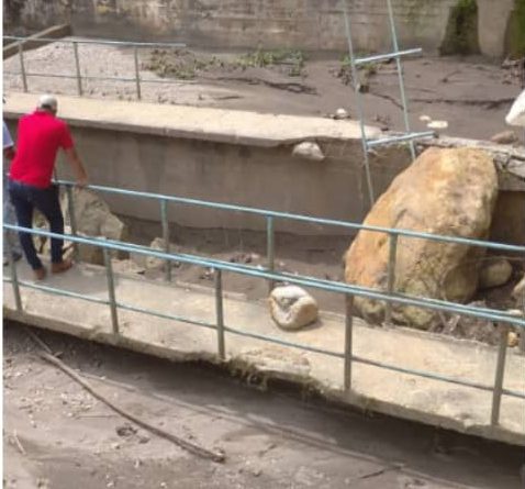 Informó Luis Calderón, de la comisión municipal del Psuv en El Vigía en articulación con la División de Mantenimiento de la empresa Aguas de Mérida que además de las labores con el Jumbo, “personal de la cuadrilla están ayudando a demoler las rocas de gran tamaño con una porra de 10 Kgs, para poder mover los pedazos y retirarlos”.