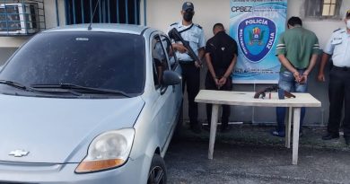A su vez, en el sector La Y, parroquia Carlos Quevedo, municipio Francisco Javier Pulgar, detuvieron a una pareja que se movilizaban en una moto Haojin 150 color rojo en actitud sospechosa, al ser abordados se les encontró entre las ropas dos envoltorios con 22 gramos de peso de presunta droga, quedaron identificados como Hermes José Valera Cárdenas (36) y Dayana Karolay Peña Duran (33).