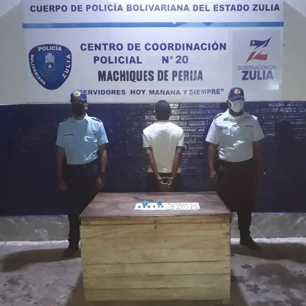 En el sector El Silencio, parroquia San José, municipio Machiques, fue capturado Iván Dario Escalante Aldana, de 32 años de edad, quien tenía en su poder 71 envoltorios de una sustancia conocida como Base con 64 gramos de peso.