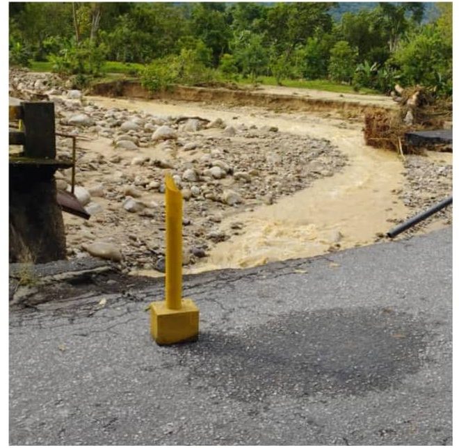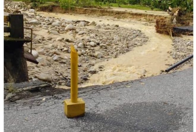 “El río por el sector Caño La Yuca, parte alta, creció tres metros haciendo daño a las unidades de producción existentes y llevándose la única pasarela para el paso peatonal y tanques de captación de agua y 5 mil metros de manguera del acueducto”.