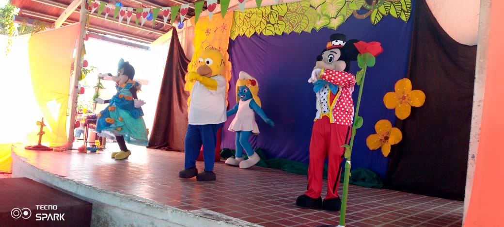 El show musical infantil fue todo un éxito en las instalaciones del colegio Don Mario Briceño Iragorry, de Caja Seca, municipio Sucre-Zulia, “Fantasías Mágicas” y Tortu Aventuras, nuevamente entretuvieron a varios niños y niñas con los personajes de la Vaca Lola, Homero Simpson, La Casa de Mickey Mouse, Los Pitufos y El Payaso Plin Plin.