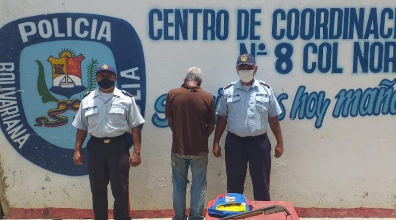 Oficiales del Centro de Coordinación Policial Col Norte pertenecientes al Cuadrante de Paz N° 16 del Cuerpo de Policía Bolivariana del estado Zulia (Cpbez) apresaron a Wilfredo José Soler Ulacio de 55 años de edad, quien tenía oculto dentro de un morral un arma de fuego, tipo escopeta, cañón corto, información dada a conocer por el director general del Cpbez, Comisionado Jefe Sergio Villasmil Rondón.
