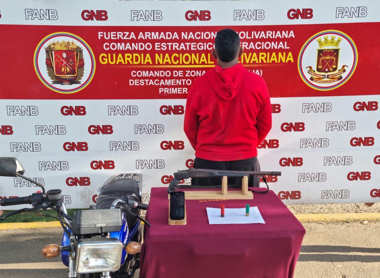 Al momento de su detención los funcionarios le retuvieron un arma de fuego tipo escopeta y un vehículo tipo moto en la cual se desplazaba.