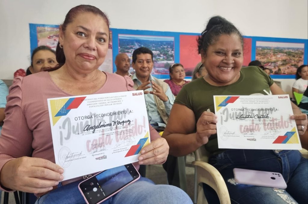 A través de la Autoridad Única de Salud, José Miguel Medina, la Red Hospitalaria y la Coordinación de Promoción y Participación en Salud, se entregaron los certificados a los participantes en el plan nacional de formación de contraloría social al Cuerpo de Inspectores Hospitalarios del Poder Popular, lo cual es una estrategia implementada por el presidente Nicolás Maduro y la Ministra Magaly Gutiérrez, para velar que toda la dotación que se envíe a los centros de salud, sea entregada y utilizada en los pacientes.