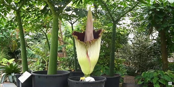 Además del olor, otros aspectos que llaman la atención de la flor del arum gigante son, en primer lugar, el tamaño, ya que puede llegar a medir hasta dos metros y medio, y, en segundo lugar, también su figura irregular y alargada, que algunos asemejan con la forma de un pene humano.