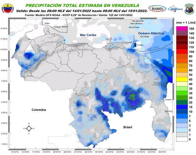 No se descartan precipitaciones en Amazonas y Bolívar.