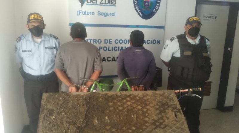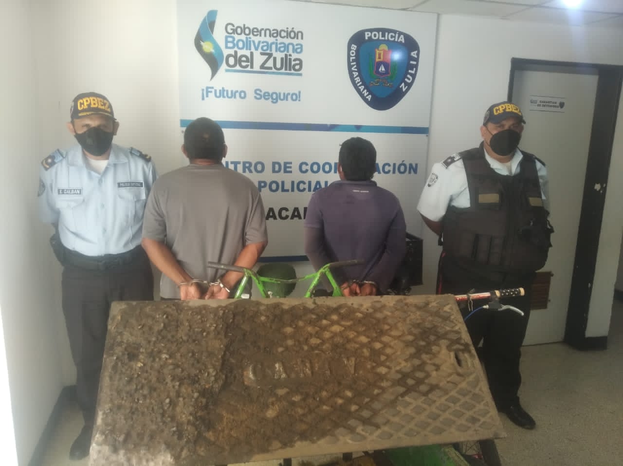 El Comisionado Jefe Sergio Villasmil director general del Cpbez manifestó que el arresto se efectuó luego que uniformados adscritos al Centro de Coordinación Policial Maracaibo Norte avistaron a dos sujetos transportando en una bicicleta, tipo triciclo con cajón y una de dos ruedas, una tapa de hierro con 90.3 de largo, 43 centímetros de ancho con un peso de 90 kilogramos, utilizada para tapar la alcantarilla donde reposan los cables de telefonía de la mencionada compañía.