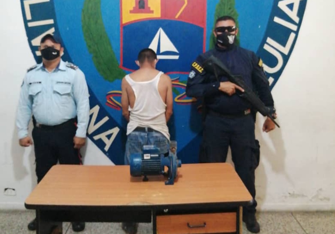 La REDI N° 1 OCCIDENTAL, ZODI N° 11 Zulia y el centro de Coordinación Policial número 11 del Sur del Lago Oeste informó de la detención de un ciudadano quien hurto de la iglesia de Santa Bárbara del Zulia, una bomba de agua.
