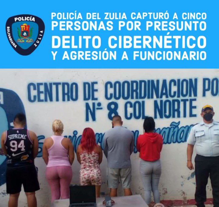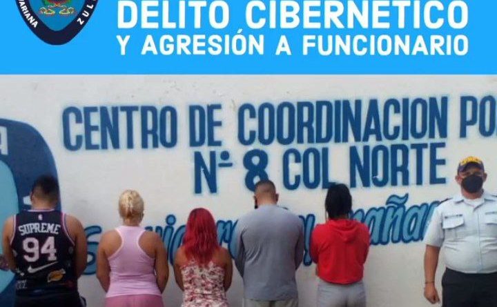 Comisión del Cuerpo de Policía del estado Zulia (Cpez) detuvieron a dos hombres y tres mujeres por resistencia, agresión a los funcionarios y presunta comisión del delito cibernético, hecho suscitado en el sector El Libertador, parroquia Jorge Hernández, municipio Cabimas