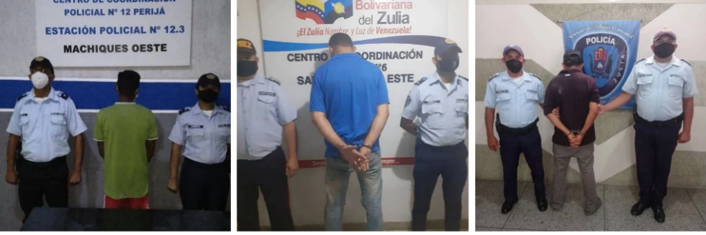 Por otra parte, en el sector San Benito, municipio San Francisco, fue capturado Jesús Javier Muñoz Araujo por agredir a su hermana, asimismo oficiales adscritos al Centro de Coordinación Policial Sur del Lago Oeste aprehendieron a José Angarita en el sector Cuatro Esquinas, municipio Francisco Javier Pulgar, por arremeter con golpes de puños en contra de su concubina.