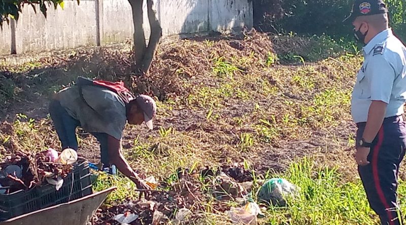 Una comisión de la subestación del cuerpo policial acantonado en la población de Caja Seca, municipio Sucre del estado Zulia, realizando labores de patrullaje por las calles de esta entidad surlaguense, atendieron el llamado de la comunidad, ya que un ciudadano se encontraba depositando desechos al lado del taller de la municipalidad.