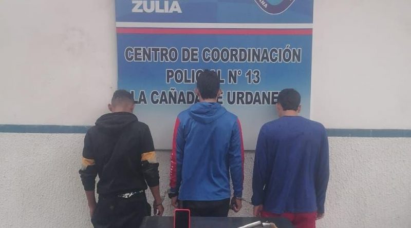 Agentes del Centro de Coordinación Policial La Cañada, en un abordaje en el sector El Parral, específicamente en la residencia Las Camelias, parroquia Concepción, municipio La Cañada de Urdaneta, aprehendieron a Yorwin Andrés Amesty Soto (20), Elvis José Villalobos Aguilar (22) y Albenis José Fernández Aguilar (21), miembros activos del Grupo Estructurado de Delincuencia Organizada (GEDO) “JL” quienes tenían ocultos un arma de fuego tipo escopetín y dos envoltorios con restos orgánicos de presunta marihuana con un peso de 74 gramos.