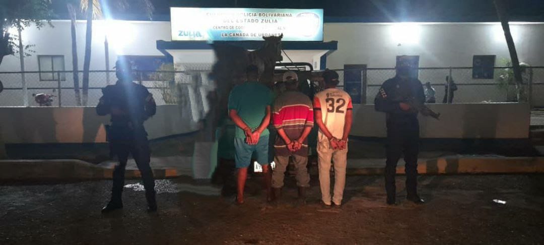 Una comisión del Centro de Coordinación Policial La Cañada de Urdaneta, detuvo en horas de la noche de este sábado en el sector El Último Tiro, parroquia Concepción, municipio La Cañada de Urdaneta, a cuatro sujetos que se trasladaban en una camioneta Ford F-150, año 1990, color verde, placa A98DN5A, donde eran transportada dos reses.