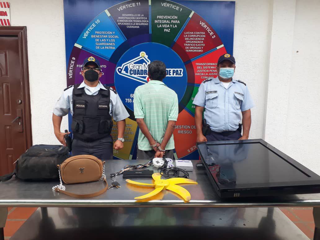 Según detalló el CJ Sergio Villasmil Rondón director general del Cuerpo de Policía del estado Zulia (Cpez), el antisocial sustrajo de la casa un televisor, una cartera, un moral, un aspa de ventilador y 40 dólares estadounidenses.