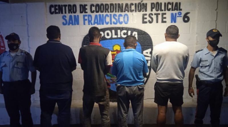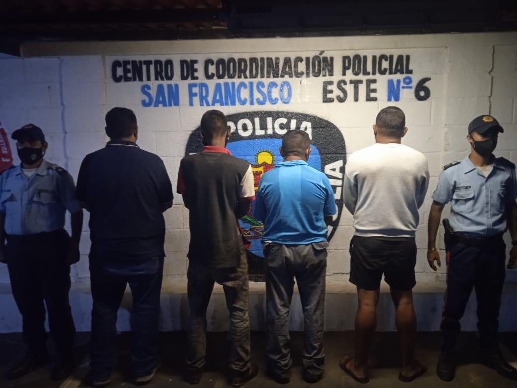 Uniformados del Centro de Coordinación Policial San Francisco Este, apresaron en el barrio El Paraíso, parroquia El Bajo, municipio San Francisco a Alexander Enrique Castillo Cardozo, Leonardo José Portillo Hernández, José Gregorio Pineda Parra y Ricardo Uriana Fernández involucrados en la extracción y comercialización ilegal de productos derivados del petróleo, según información suministrada por el C/J Sergio Villasmil, director general del Cuerpo de Policía del estado Zulia (Cpez).