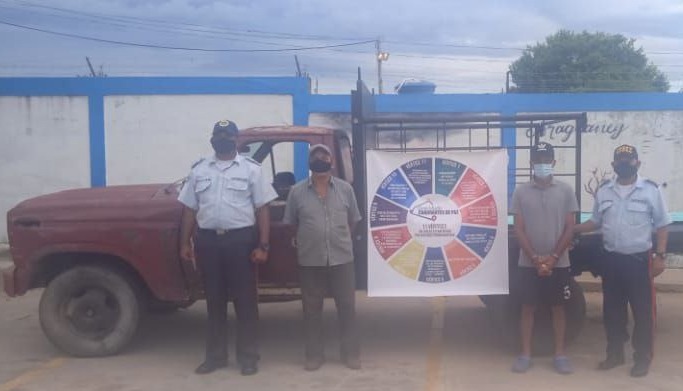 Efectivos del Centro de Coordinación Policial Subregión Perijá, aprehendieron a Norge Levi Gutiérrez Urdaneta (51) y a Gustavo Adolfo Boscán Rodríguez (66), por hurtar láminas de acerolit de la Casa Comunal del sector Corito de La Villa del Rosario, municipio Rosario de Perijá.