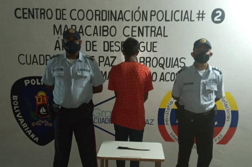 En otro procedimiento en el municipio Maracaibo, específicamente en el Barrio Agua de Dios, parroquia Cacique Mara, fue arrestado Emiro González de 18 años, quien con cuchillo en mano se presentó en la residencia de su ex pareja amenzándola de muerte; a través de dialogo los oficiales del Centro de Coordinación Policial Maracaibo Central lograron que de pusiera su actitud y se entregara.