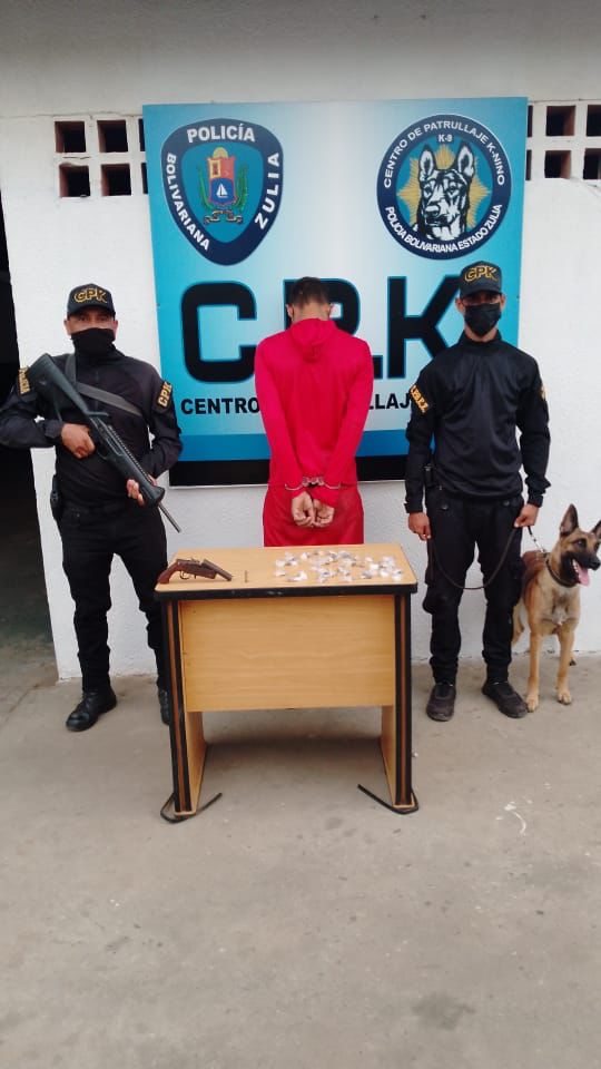 En un procedimiento ejecutado por uniformados del Centro de Patrullaje K-nino (CPK), fue arrestado en el sector Villa Baralt del municipio Maracaibo, Maikel Enrique González Rosales de 25 años de edad, alias “Maikel sin Diente” el cual tenía oculto en sus partes íntimas 38 envoltorios, tipo cebollita de presunta marihuana, con un peso de 43 gramos, también se le encontró en el cinto del pantalón un arma de fuego, no industrializada con un proyectil en su estado original. El hombre señalado por los vecinos, como distribuidor de sustancias prohibidas en pequeñas porciones quedó bajo custodia policial.