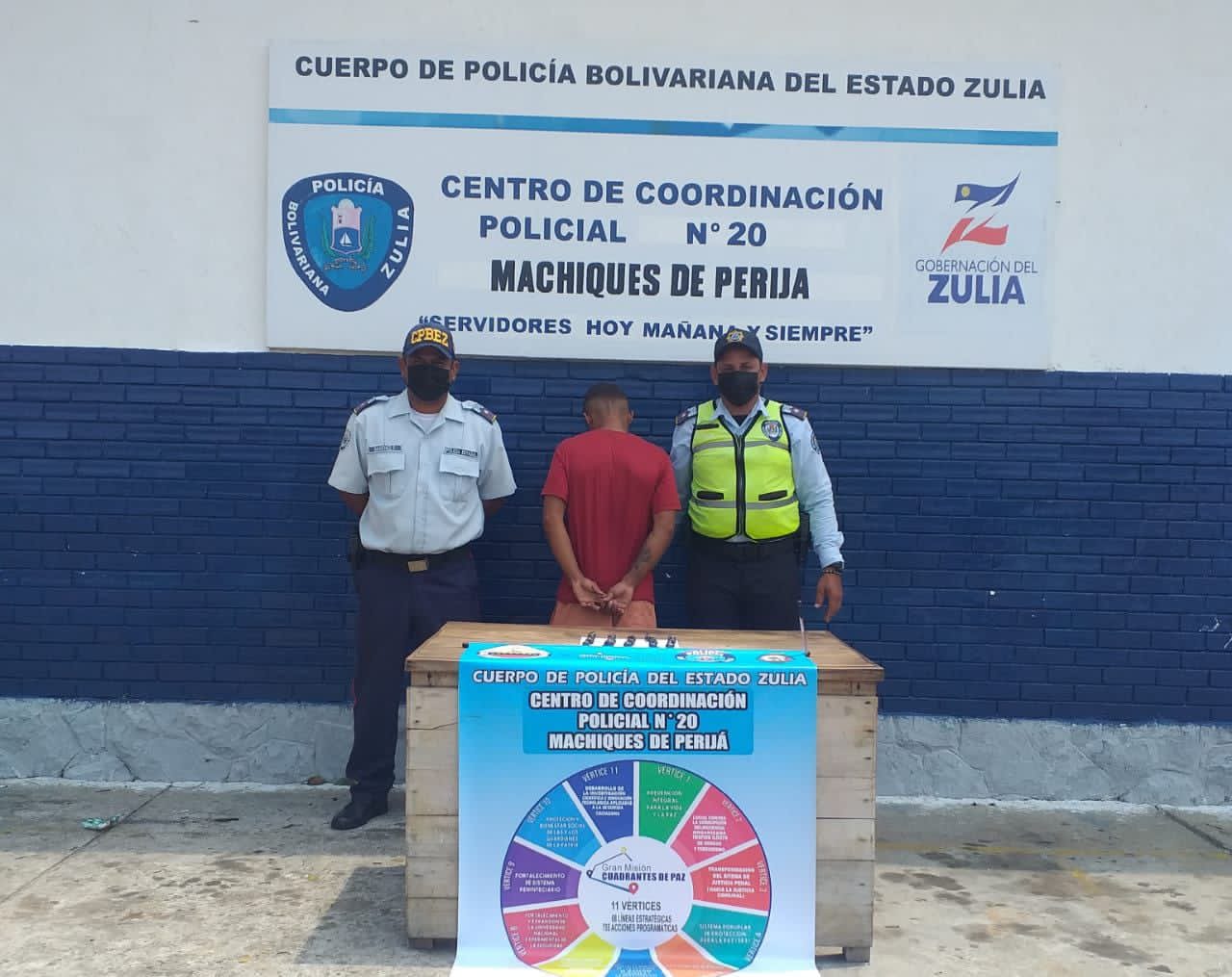 En el sector Los Robles, parroquia Sinamaica, agentes del Centro de Coordinación Policial Municipio Indígena Guajira detuvieron a Yunairo Alexander Chourio Fernández de 38 años de edad, quien movilizaba 201 gramos de presunta marihuana, distribuidos en 167 envoltorios tipo pitillo y una bolsa así como 28 láminas de papel para la fabricación de cigarrillos.