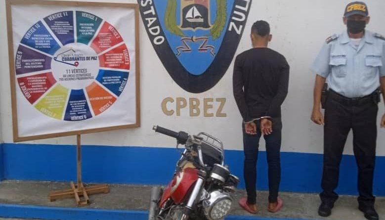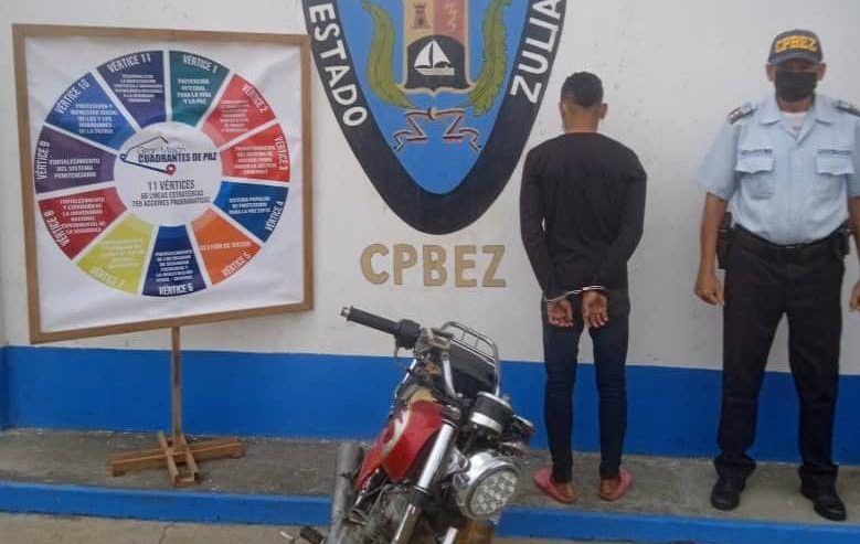 Patrulleros del Centro de Coordinación Policial Subregión Perijá, por el sector La Engrasonera de la Villa del Rosario, municipio Rosario de Perijá, aprehendieron a Juan Diego Medina González de 22 años de edad, quien conducía una moto MD de color rojo, la cual resultó solicitada por robo, así lo informó el CJ Sergio Villasmil Rondón director general del Cuerpo de Policía del estado Zulia (Cpez).