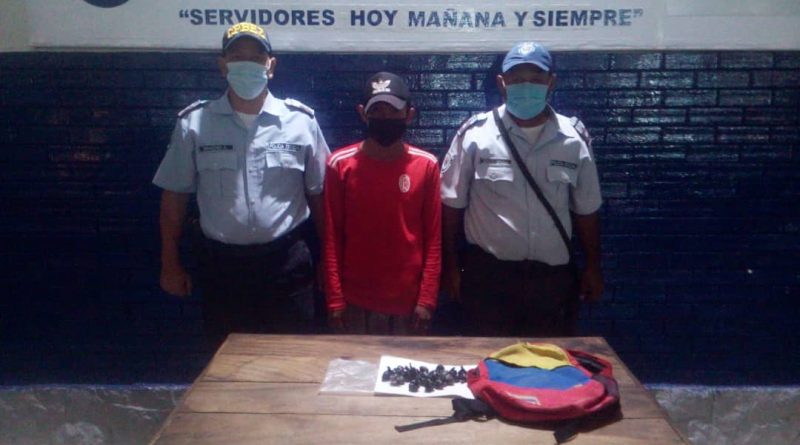 Al hombre se le incautó dentro de un bolso 26 envoltorios plásticos transparente, tipo cebollita con un peso de 66 Gramos presumiblemente de Marihuana.