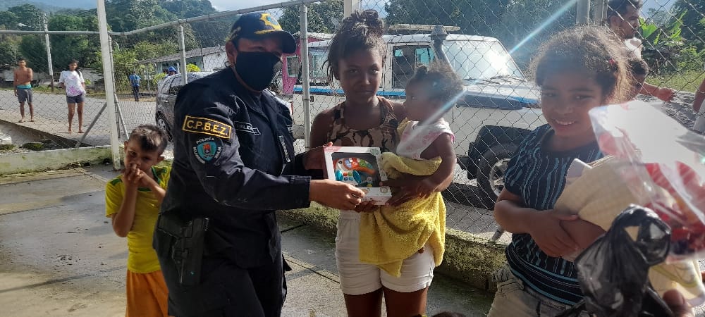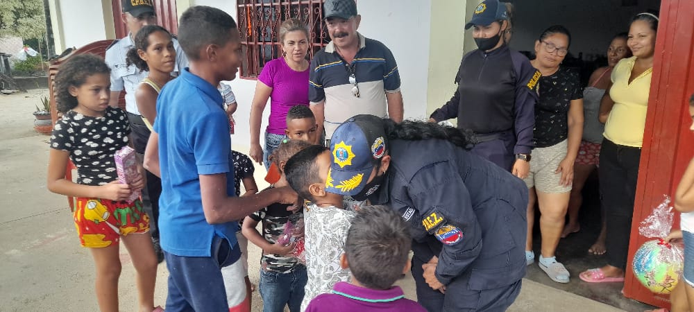 Funcionarios del Cuerpo de Policía del estado Zulia, adscritos al Centro de Coordinación Policial Sur del Lago Este, encabezados por la Comisionada Jefe, Lucía Melean, realizaron recientemente una visita a los refugios de San Antonio de Heras y Aguas Calientes, municipio Sucre, con la finalidad de regalarle una sonrisa a los niños y niñas que se encuentran viviendo en estos refugios; durante la visita los pequeños recibieron juguetes y golosinas.