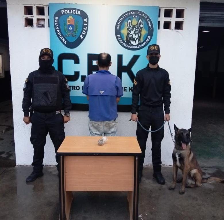 En la avenida 2 El Milagro, parroquia Bolívar, fue capturado Jorvi José Morán Morán de 33 años de edad, quien tenía en un morral un paquete con un peso de 209 gramos con la sustancia ilegal.